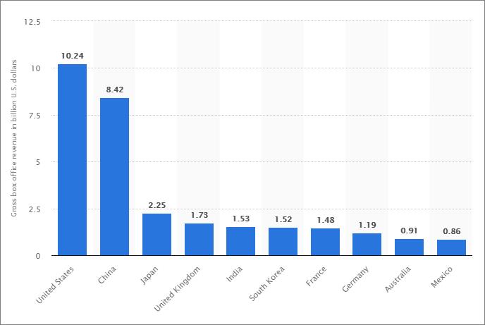 Leading film markets worldwide in 2017, by gross box office revenue (in billions U.S. dollars)